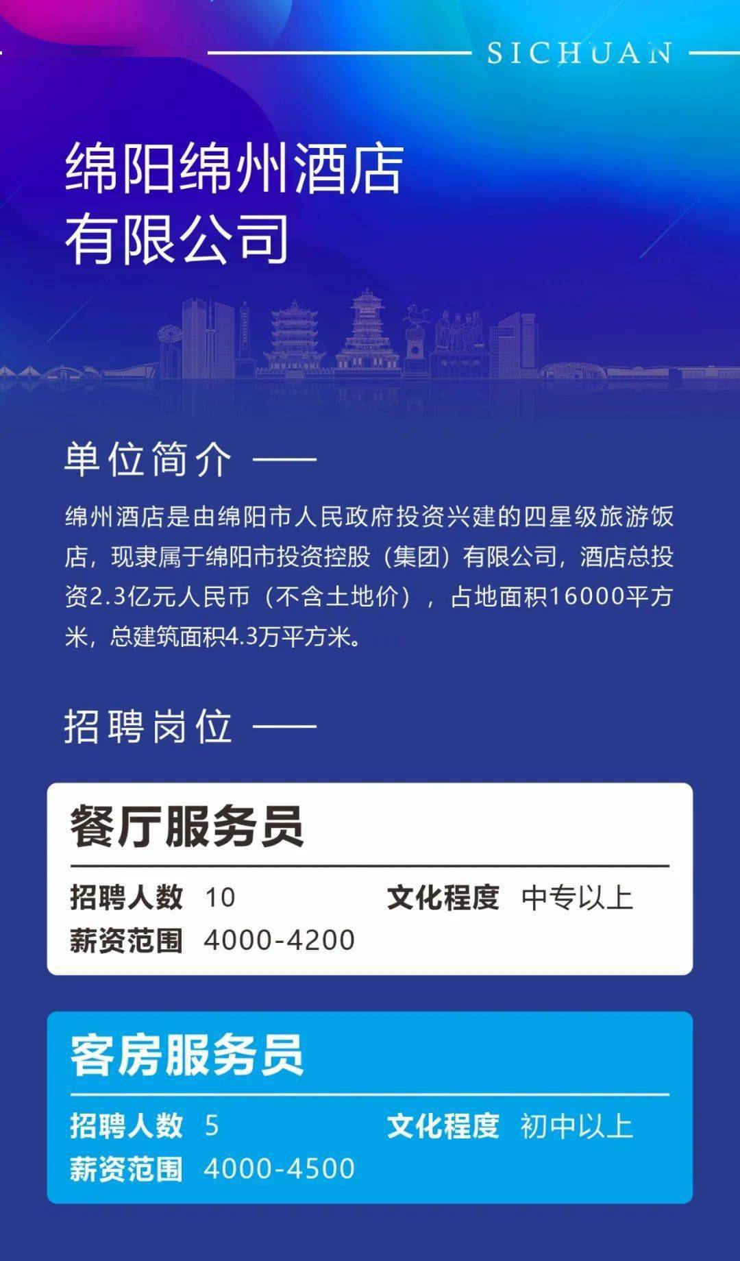 让我们一起探索绵阳的自然美景,一起寻找内心的平和与宁静,在这个美丽的世界里,让我们一起找到那份属于我们的幸福和满足,祝愿大家在绵阳的招聘之旅中一帆风顺,找到那份属于你自己的宁静和满足,这个世界有着无尽的美好等待你去发现,无数的机会等待你去抓住,让我们一起踏上这个旅程吧!